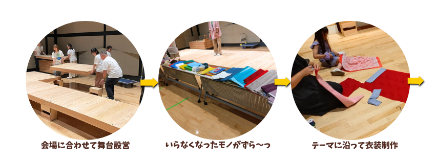 家庭や企業からの廃材を活用し、親子(グループ)でコスチューム制作。