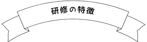 | ①退屈しない参加型研修 ②アートワーク付き実践研修 ③プロフェッショナルな知識・体験から作成された研修内容 |